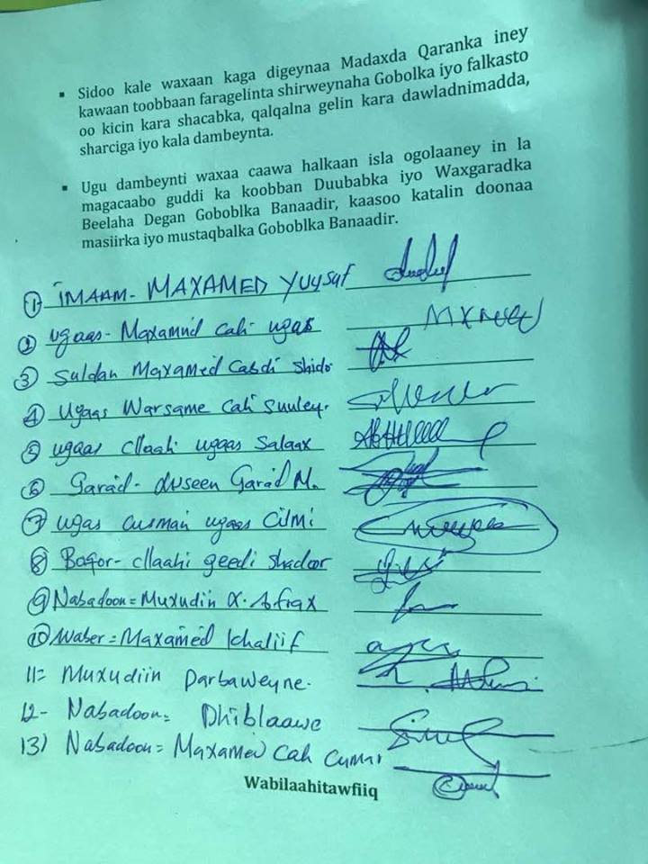 Shirkaan ayaa laga soo saaray bayaan madaxda sare looggu sheegaayo iney waajib tahay inuu qabsoomo shirka looga tashanaayo aayaha gobalka Banaadir.