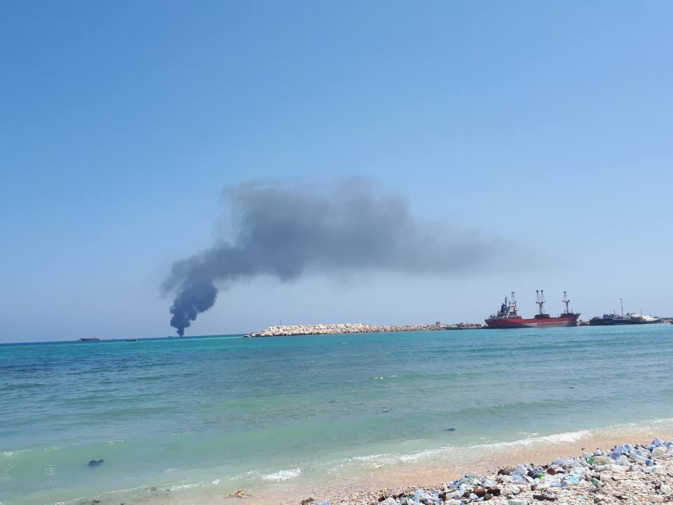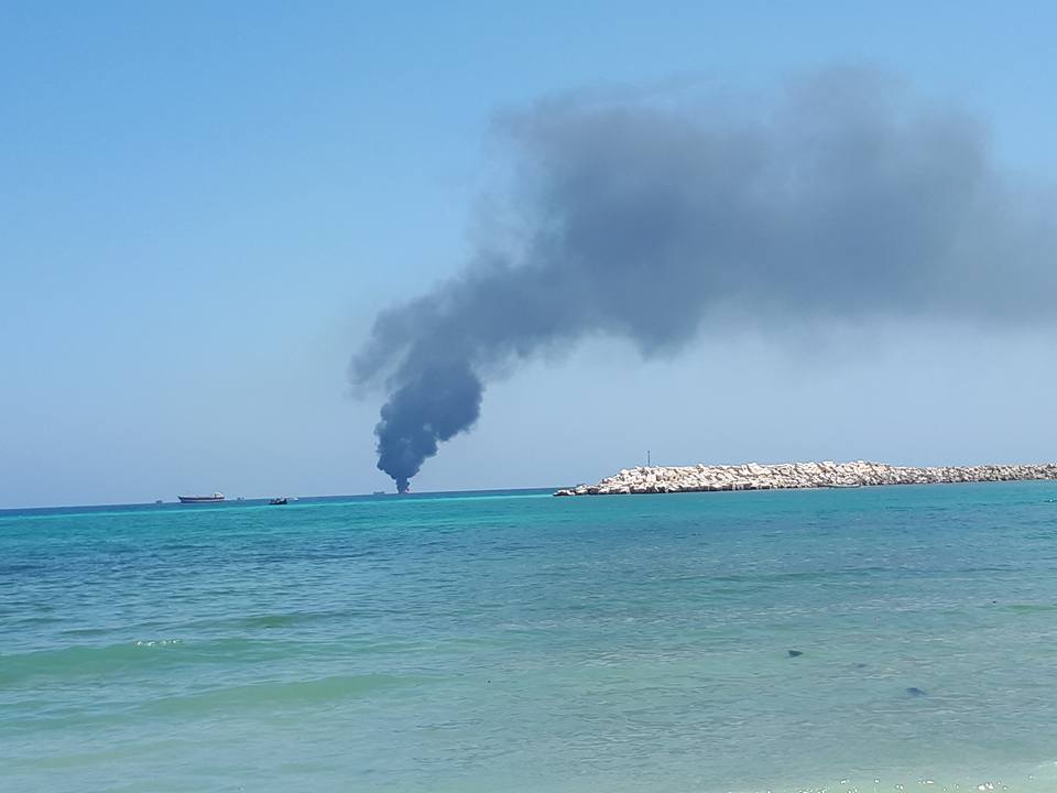 Doonta ayaa taagneyd meel dhanka Bari kaga beegan Badwaynta , waxaana dabku uu ka kacay Gudaha doonta.