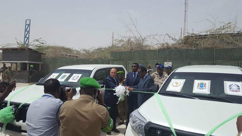 Safaaradda Talyaaniga ee Soomaaliya ayaa Wasaaradda Amniga Soomaliya ku wareejisay gaadiid gaashaaman iyadoo u soo marisay Ururka Midowga Africa.